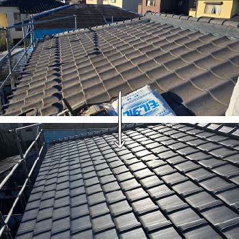 瓦屋根の修理、煉瓦の取り直し。和瓦から洋瓦まで、入れ替えも対応。 瓦屋根補助金制度のご相談にも対応しております。